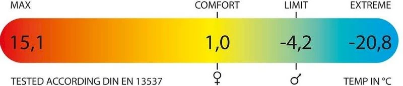 De Polydaun Ijsvogel heeft een comforttemperatuur van 1°C voor vrouwen. Bij mannen is de comforttemperatuur iets lager. Doordat je de mogelijkheid hebt om te ventileren kun je de temperatuur in de slaapzak goed regelen. Dit zorgt ervoor dat je tot ongeveer 15°C comfortabel kunt overnachten in de slaapzak. Ga je naar een bestemming waar het waarschijnlijk warmer wordt? Dan raden we je een andere zomer slaapzak aan.